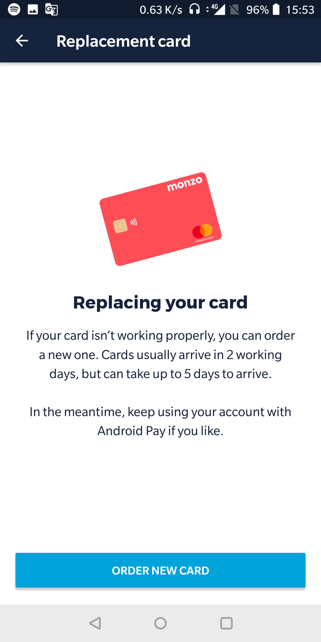 When activating Google Pay with my (replacement) Monzo card tonight, both the text and notification still say Android Pay. Just a heads up on a tiny detail to update