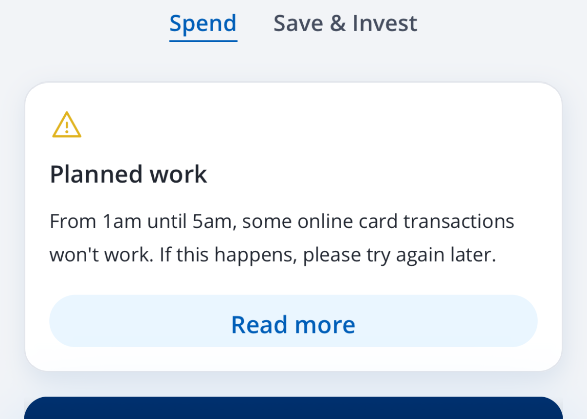 I know it happens with other banks but I did expect a notice today to let me know. I can’t recall the last time Monzo had scheduled maintenance or really much of an outage.