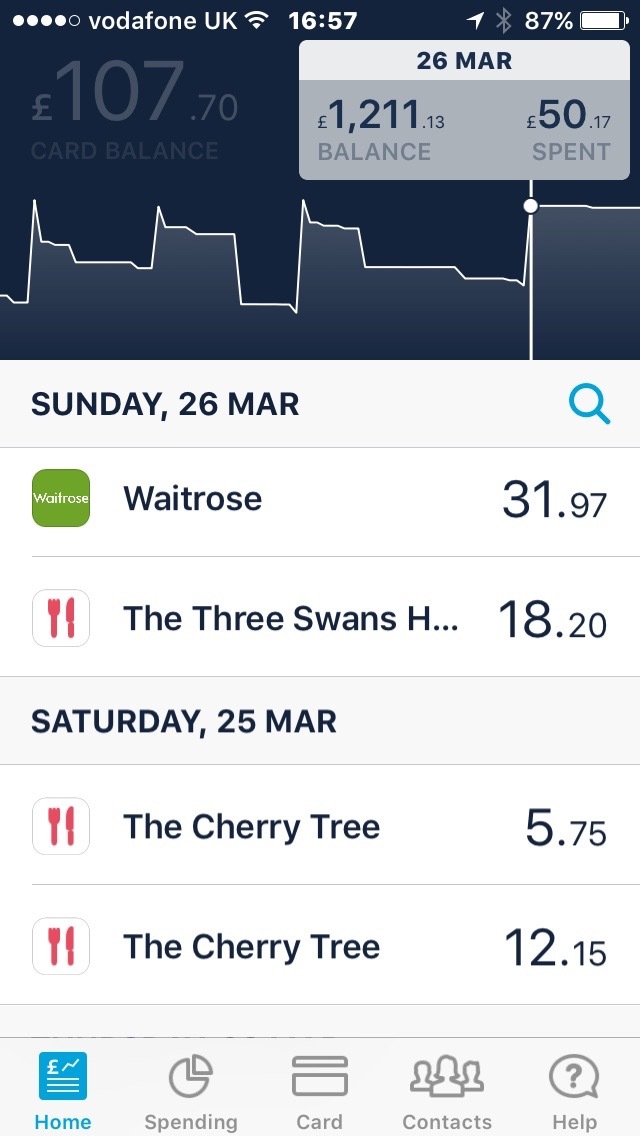 The Pulse Graph makes it reaally easy to scroll through your old transactions quickly, as you tab through the graph, your transaction feed jumps to the position you’ve selected.