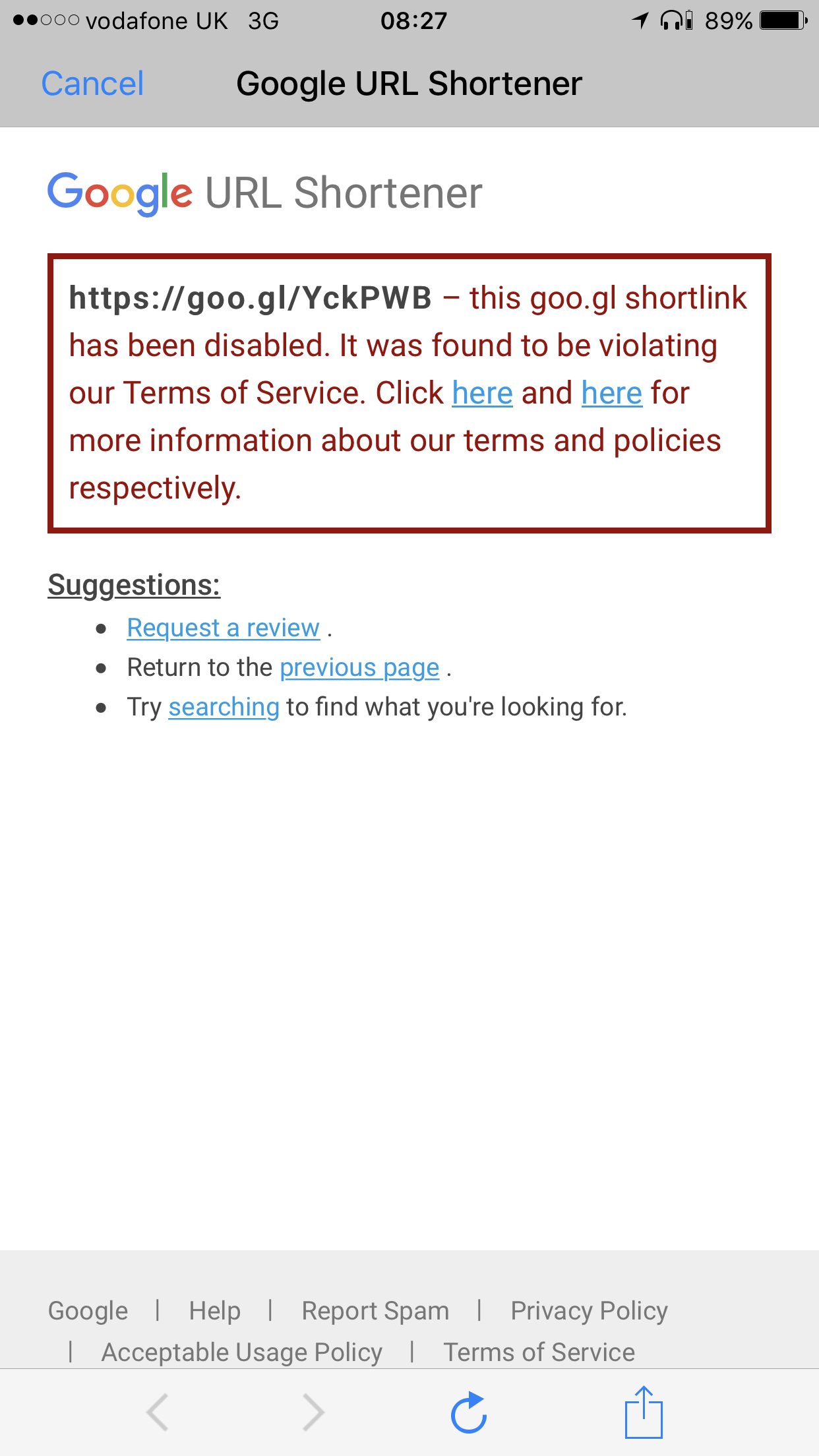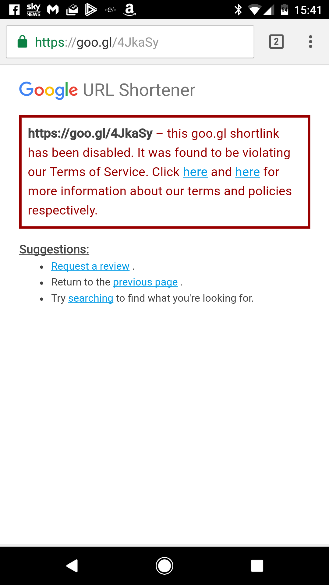 Just a quick update on this; we’re in touch with Google (it relates to the API product ID we use to generate shortlinks) and working hard to resolve this promptly!