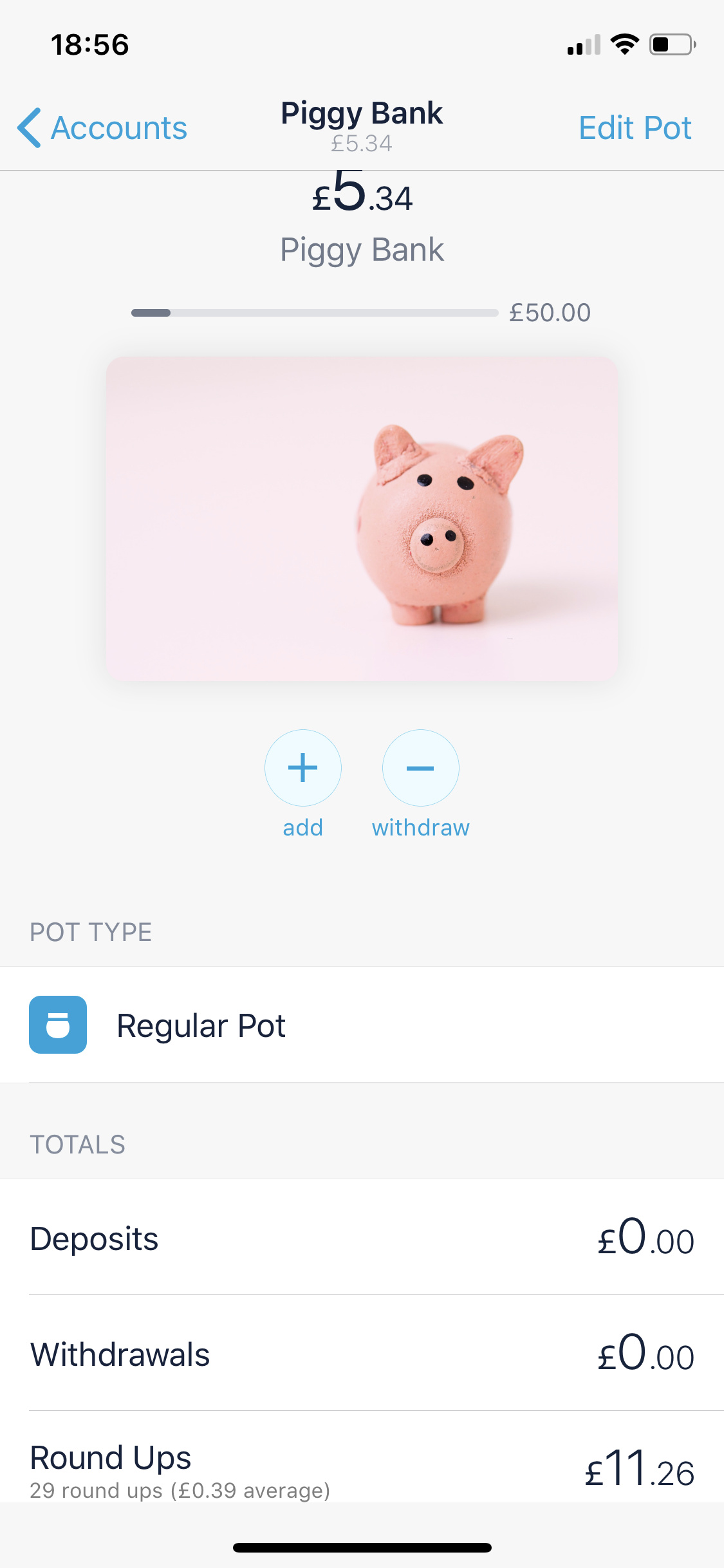 I’ve opened the app multiple times since a roundup transaction earlier this evening, but it wasn’t until I went to the account tab, scrolled down to my roundup pot, that I saw it updating right in front of my eyes.