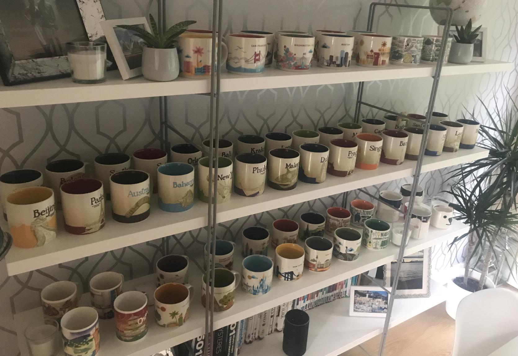 I collect Starbucks Mugs from all the places Iāve been in the World. No-one is allowed to drink out of them though!