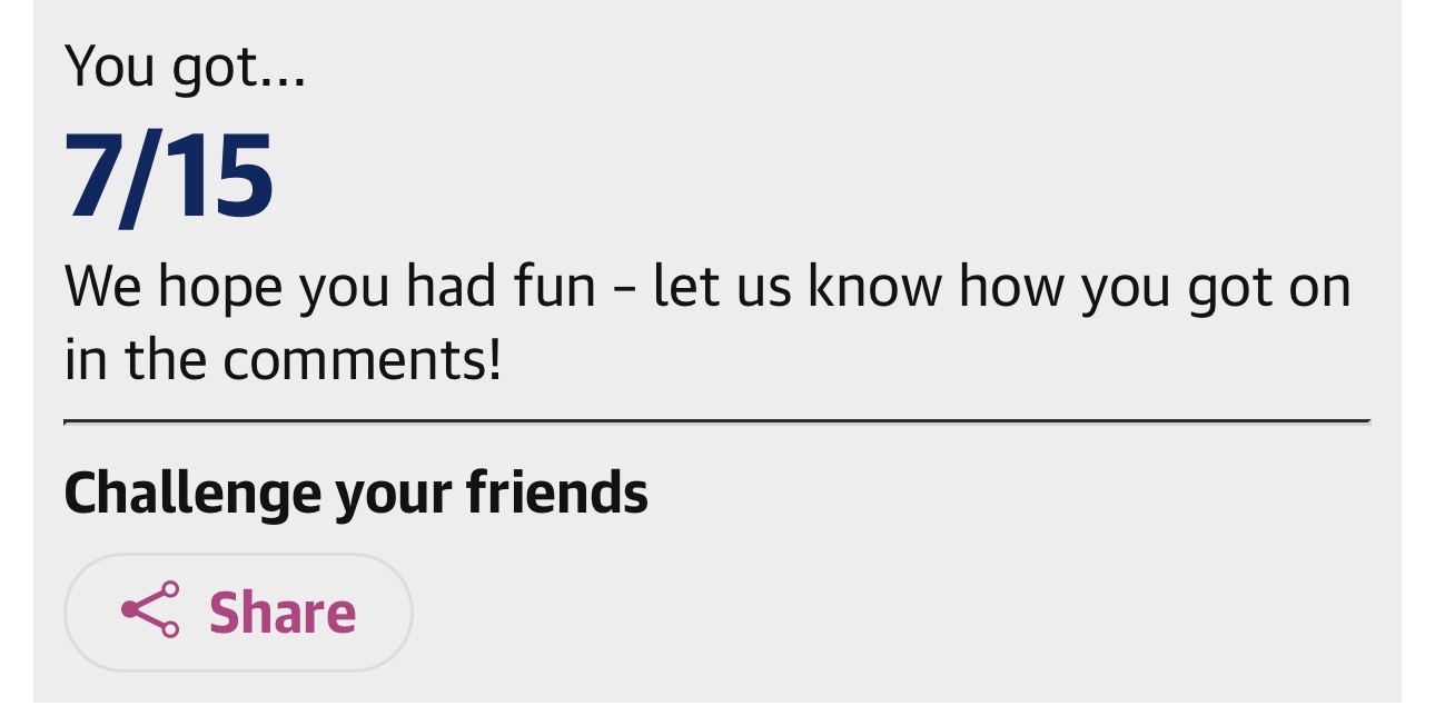 In that case, I got 15/15 which I’m quite pleased with